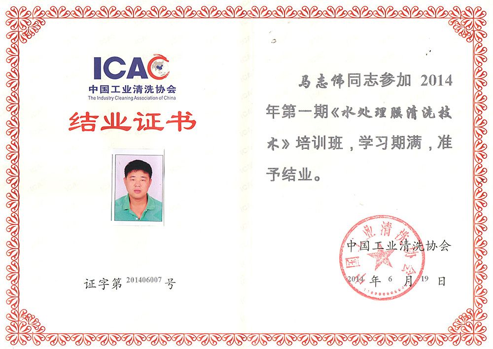 水處理膜清洗技術(shù)結(jié)業(yè)證書